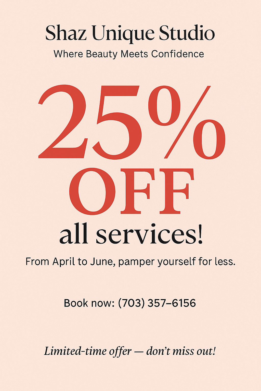 Our team of skilled hair stylists is dedicated to providing top-quality services and creating the perfect look for each and every one of our clients. We value your time and strive to make your visit to Shaz Unique Studio as enjoyable as possible. We offer flexible scheduling, and our team is always happy to answer any questions or concerns you may have. Contact us today to schedule an appointment or to learn more about our services.
